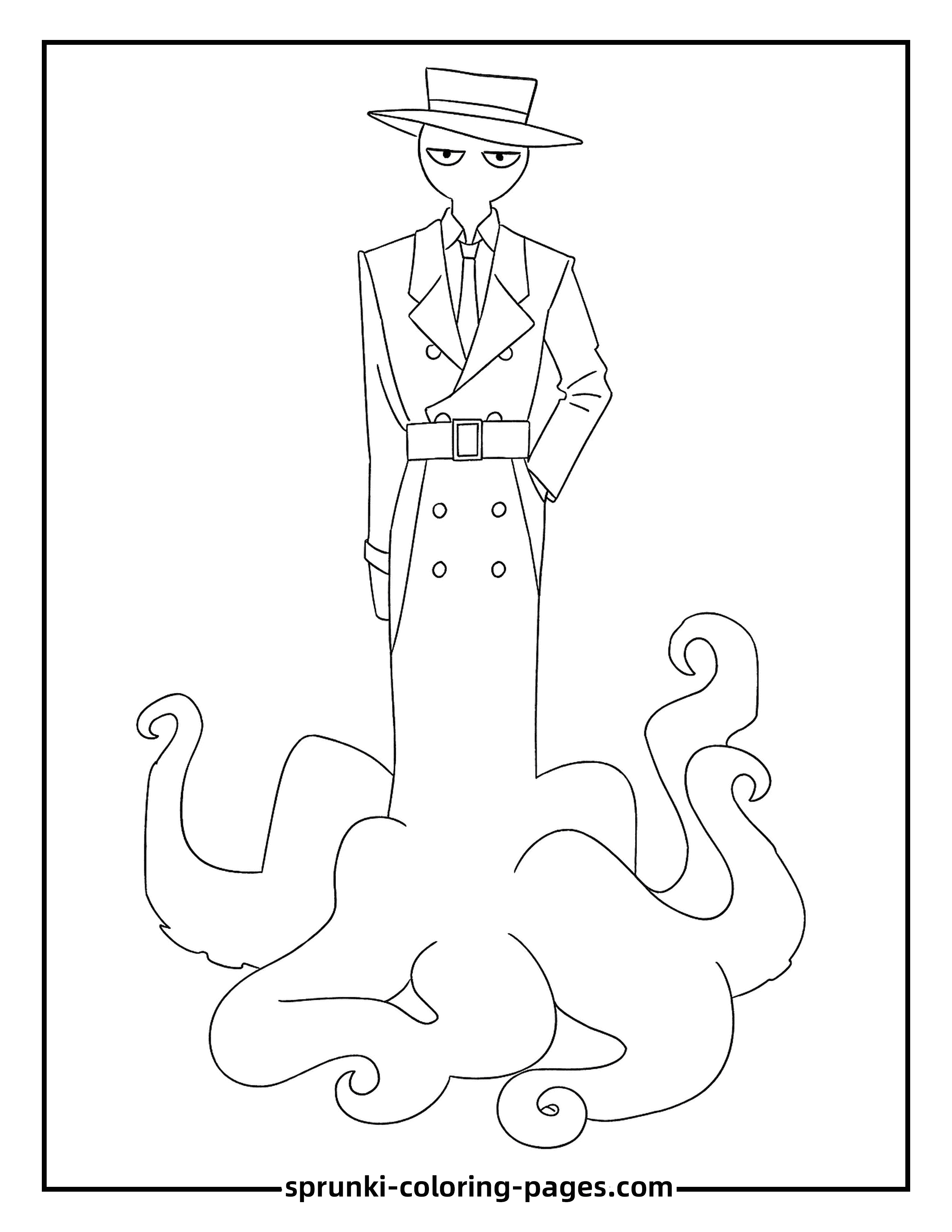 This Black Sprunki Coloring Page features the iconic character Black dressed up in a fun and imaginative octopus cosplay. Fans of Sprunki coloring pages can enjoy adding vibrant colors to this unusual and playful version of Black, contrasting with his normally dark and ominous personality from Incredibox - Sprunki. This coloring page offers a creative twist on the main antagonist, allowing enthusiasts to explore a lighter and more whimsical side of Black while keeping his signature mysterious and powerful presence.
