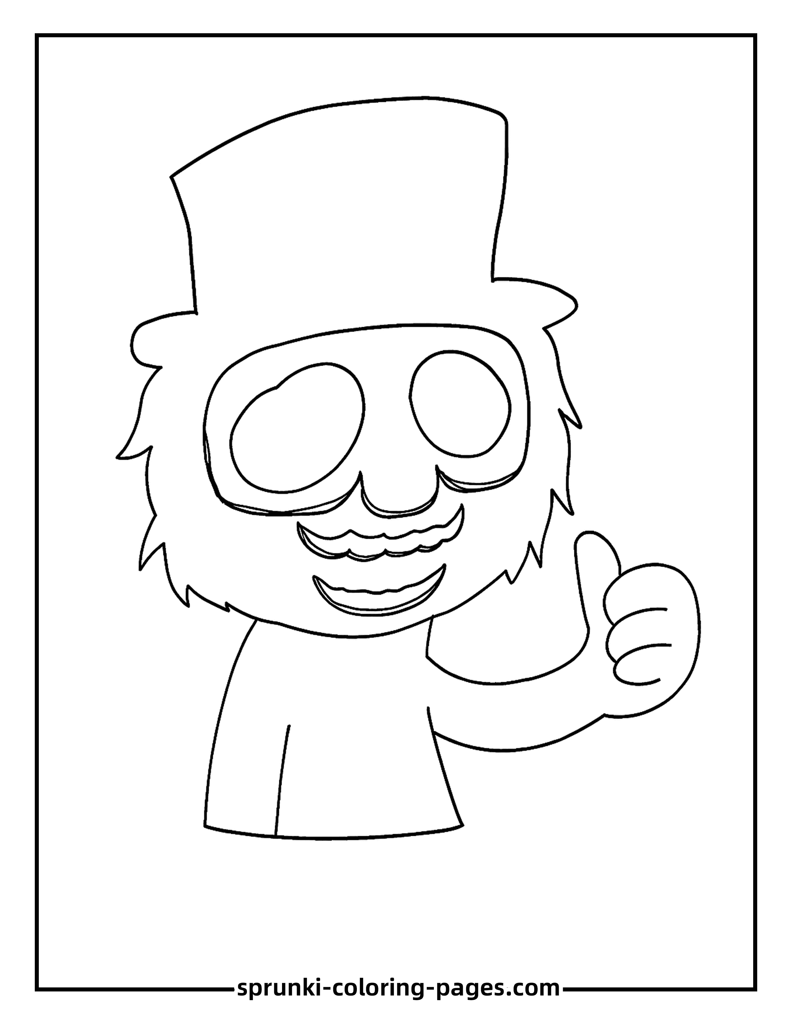 This Black Sprunki Coloring Page captures Black giving a thumbs up, presenting a lighter and more playful side of the usually ominous character from Incredibox - Sprunki. Fans of Sprunki coloring pages can enjoy filling in the details of Black’s dark figure, including his top hat and signature shadowy presence, while exploring a rare moment of positivity. This coloring page is perfect for collectors and enthusiasts who want to bring both the dark and playful elements of Black to life in their artwork.