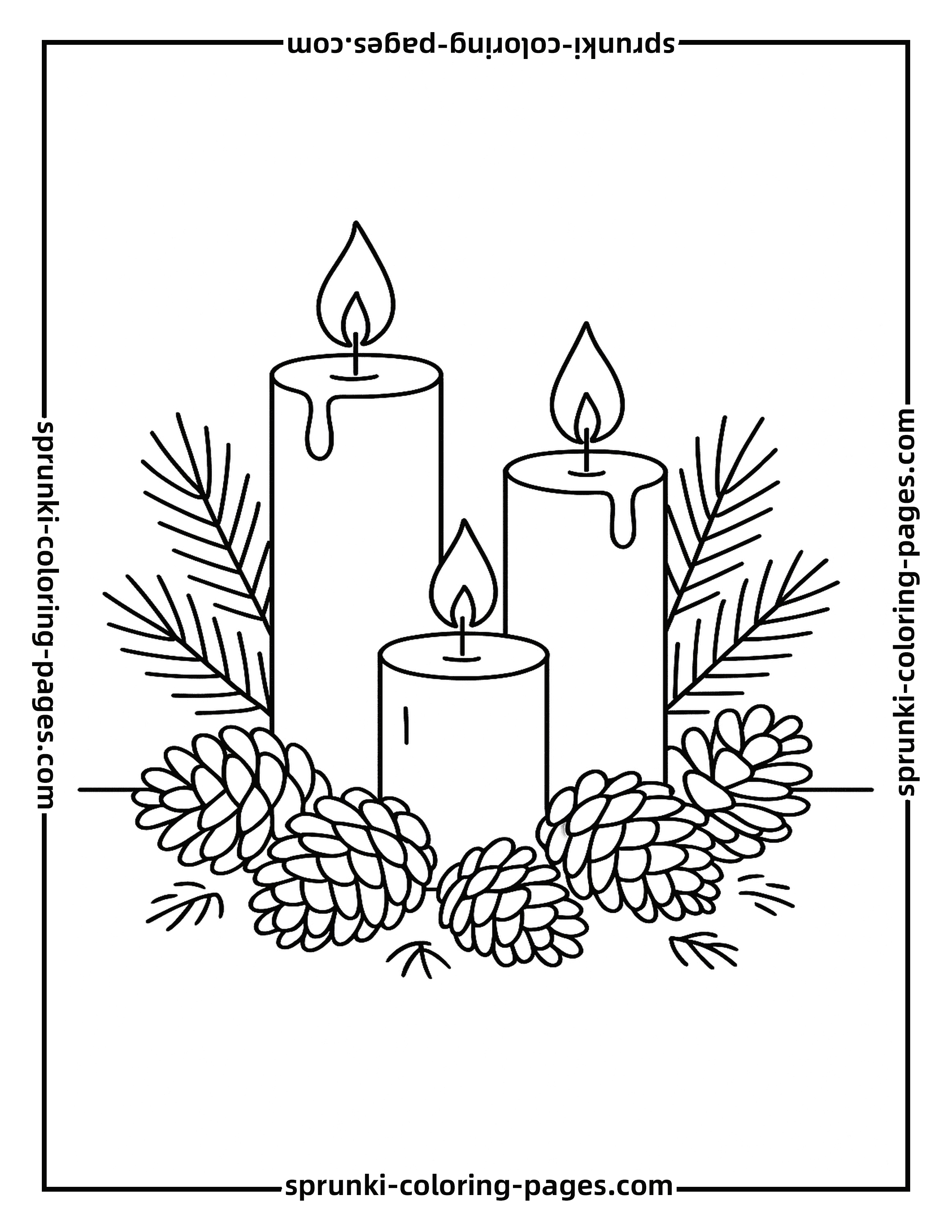 Enjoy the warmth of this cozy candlelight scene in our Easy Christmas Coloring Pages collection. Featuring glowing candles on a table surrounded by pine cones, this illustration invites calm and joy during the holiday season. The design is simple and beginner-friendly, making it perfect for children to explore their creativity. Discover more festive designs on our main christmas coloring pages collection for endless coloring fun.