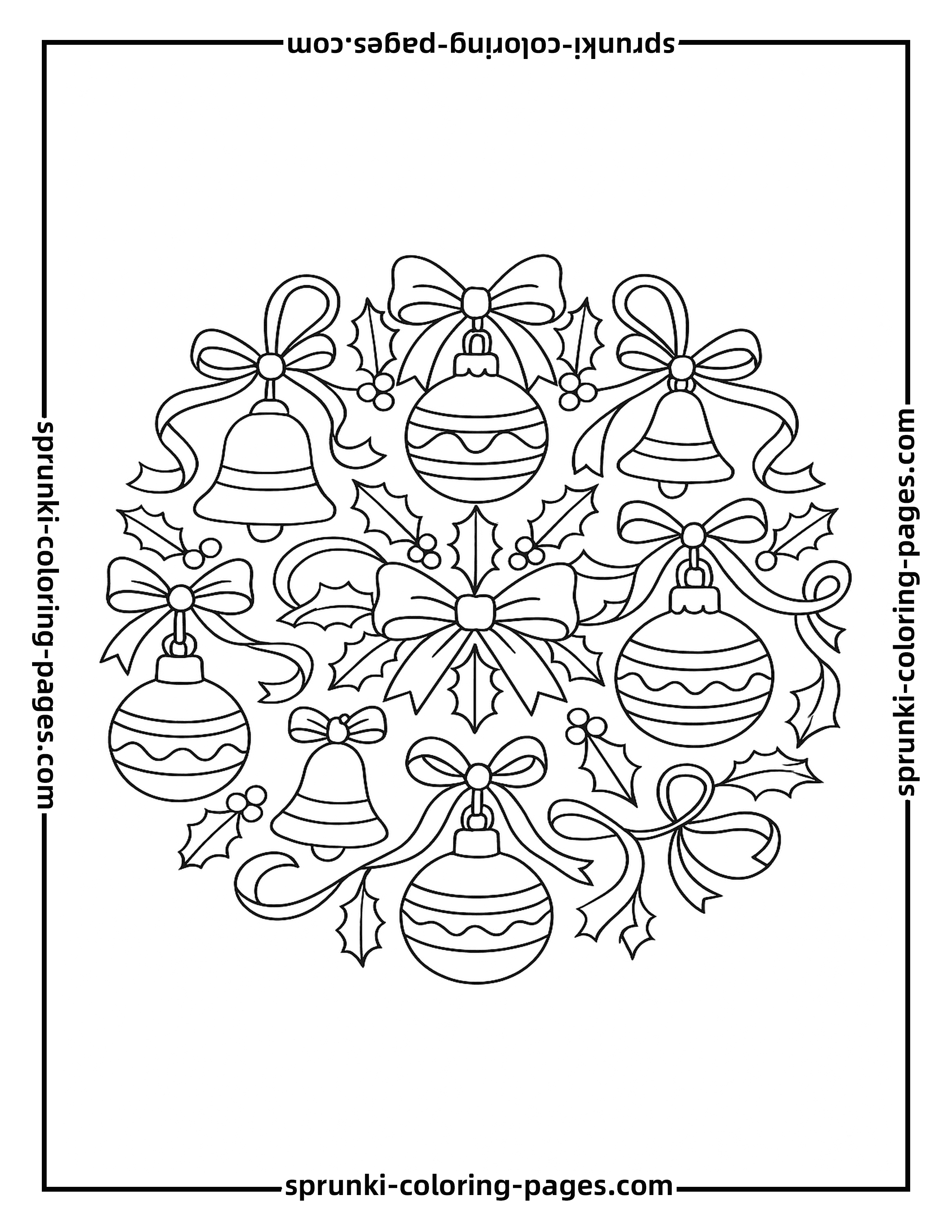 Christmas Mandala Coloring Page – Baubles, Bells, and Ribbons