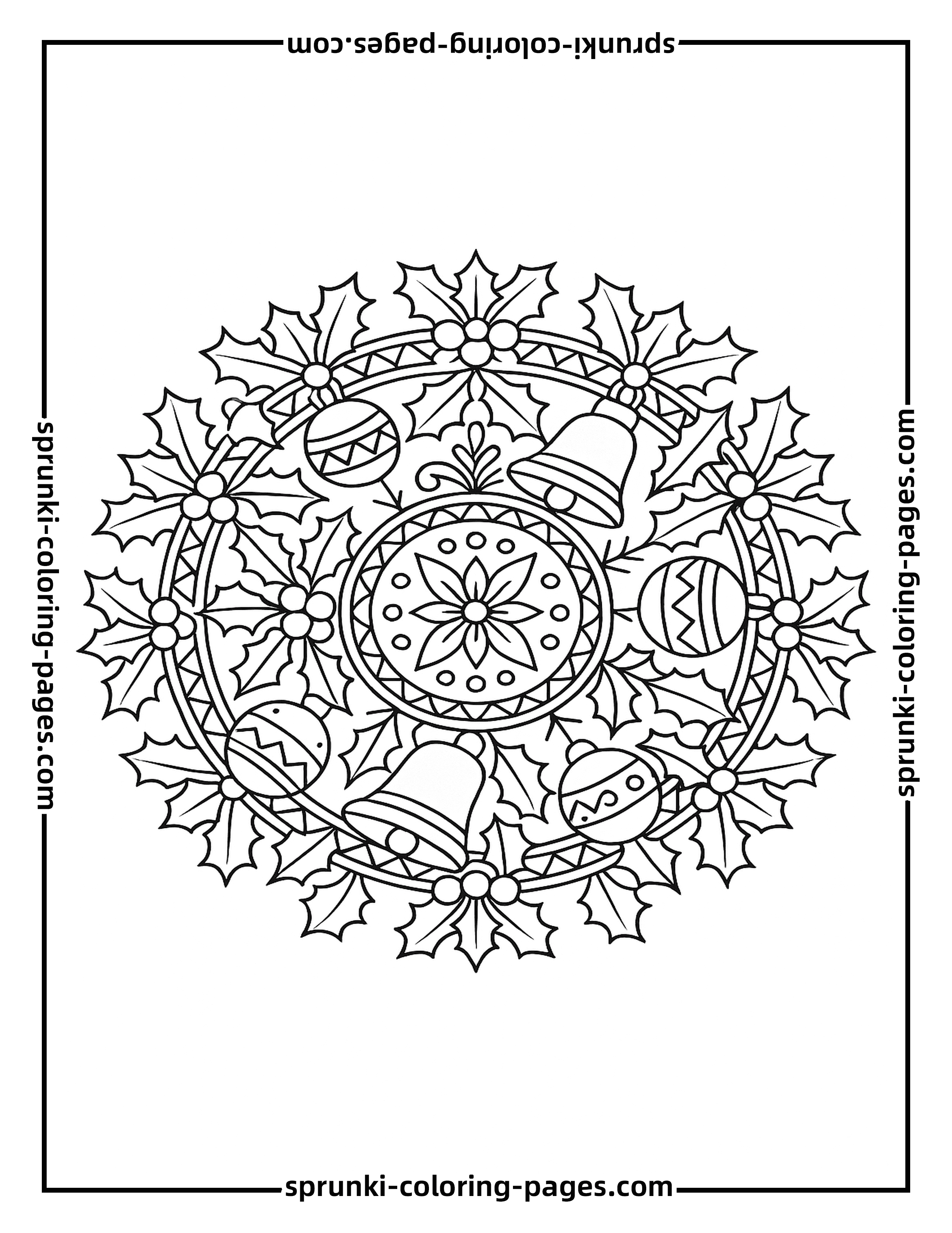 - ›Christmas Mandala Coloring Page – Holly, Bells, and Ornaments