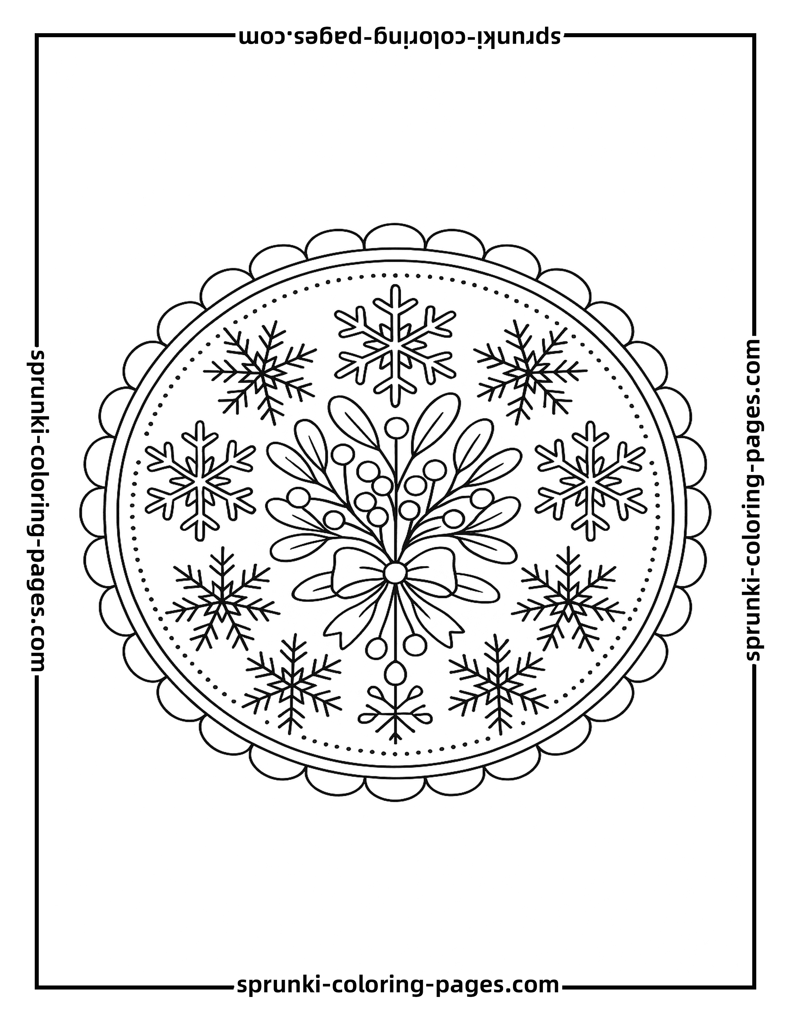 - ›Christmas Mandala Coloring Page – Mistletoe and Snowflakes