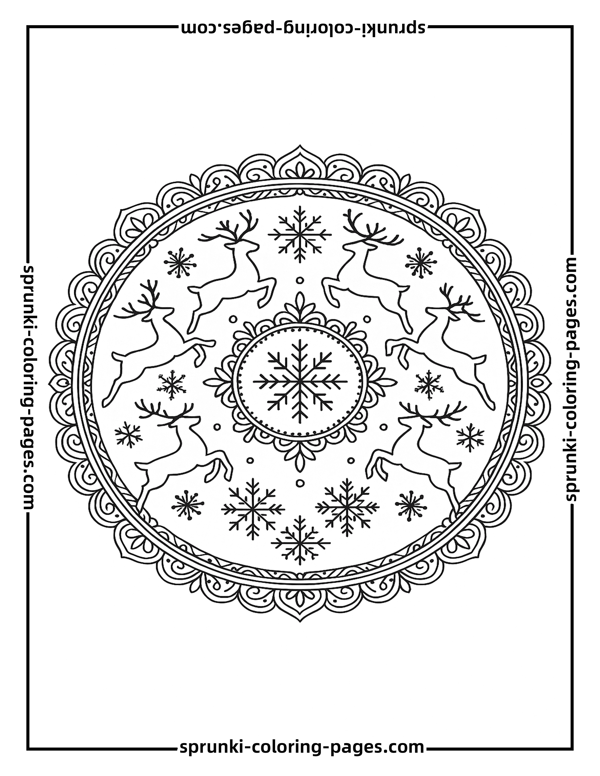 - ›Christmas Mandala Coloring Page – Reindeer and Snowflake Pattern
