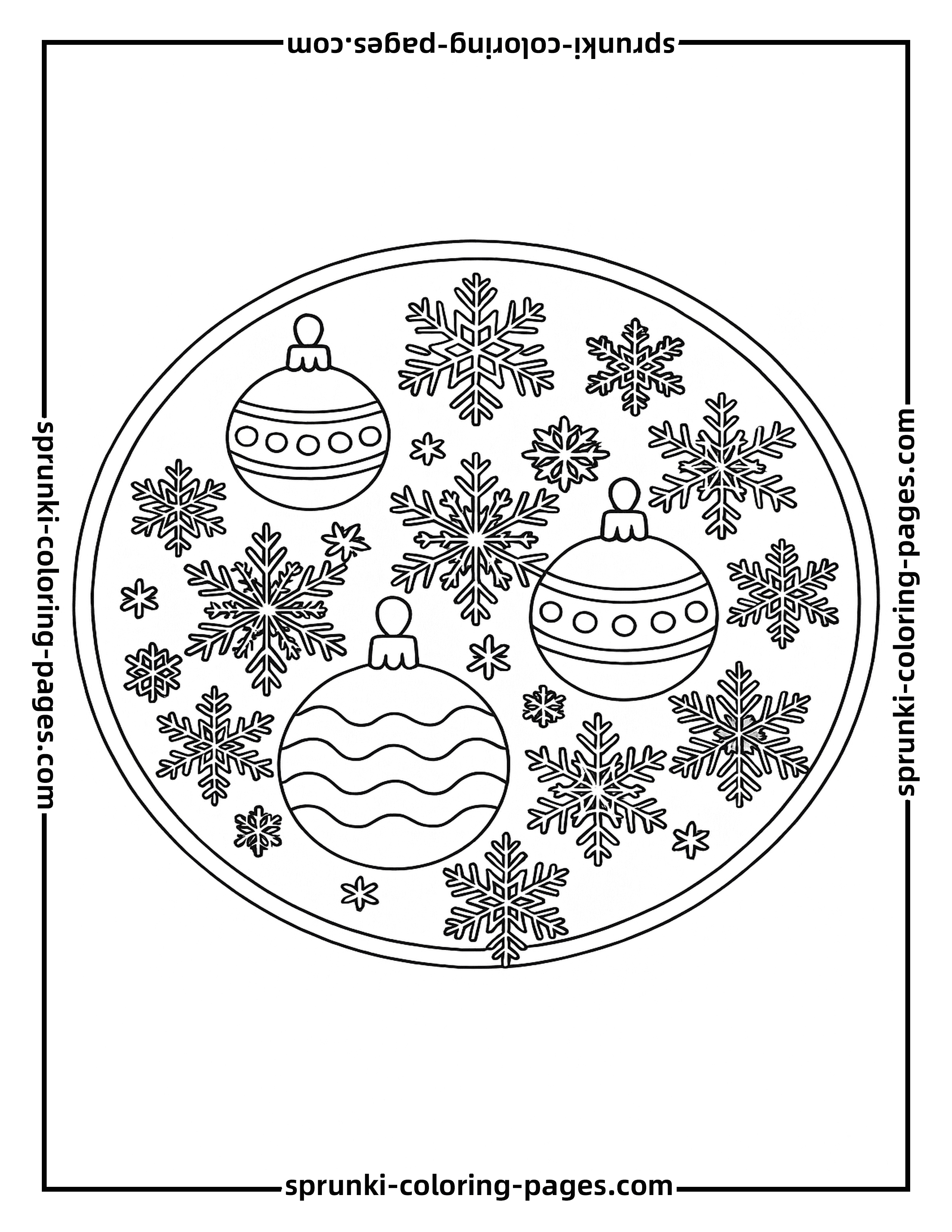 Christmas Mandala Coloring Page – Snowflakes and Baubles