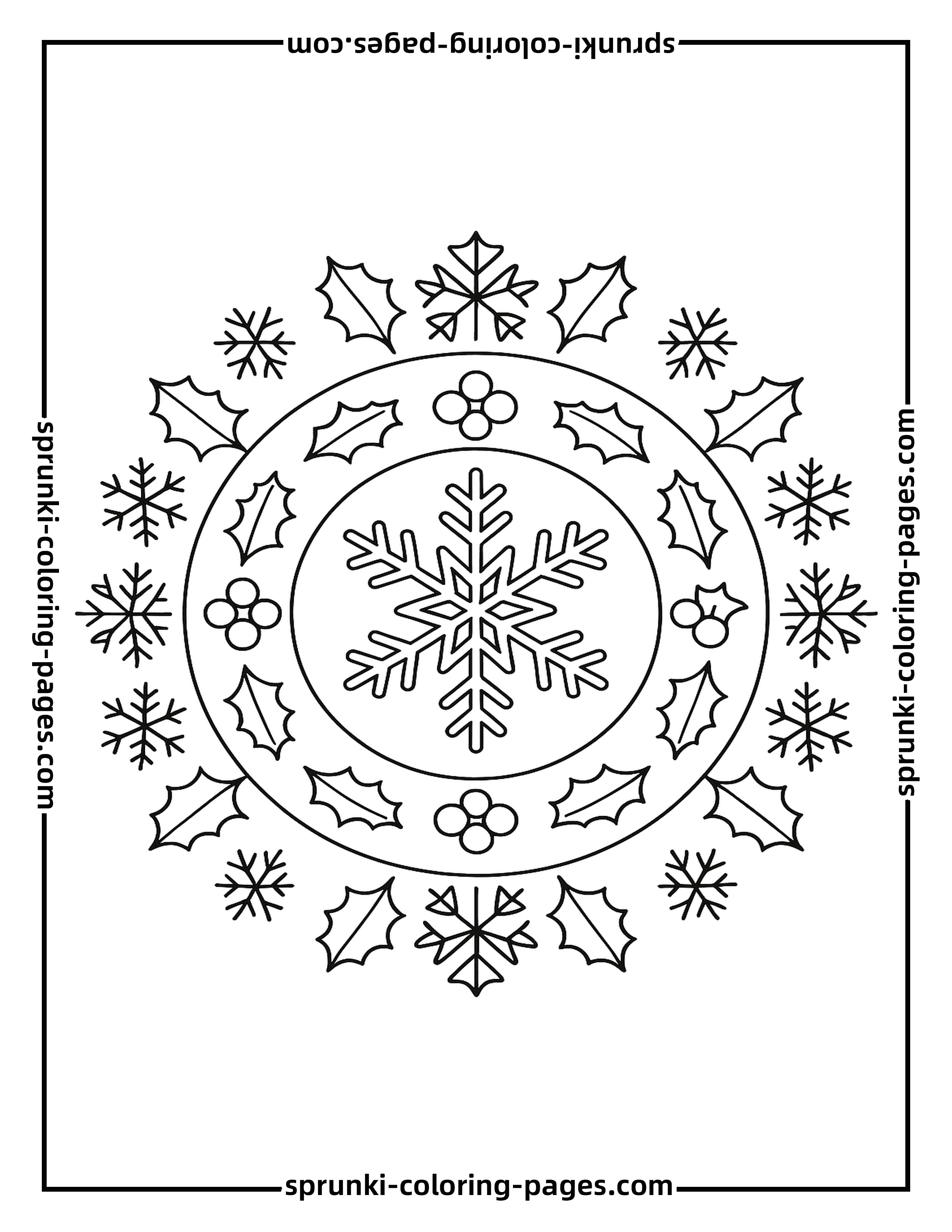 - ›Christmas Mandala Coloring Page – Snowflakes and Holly Leaves