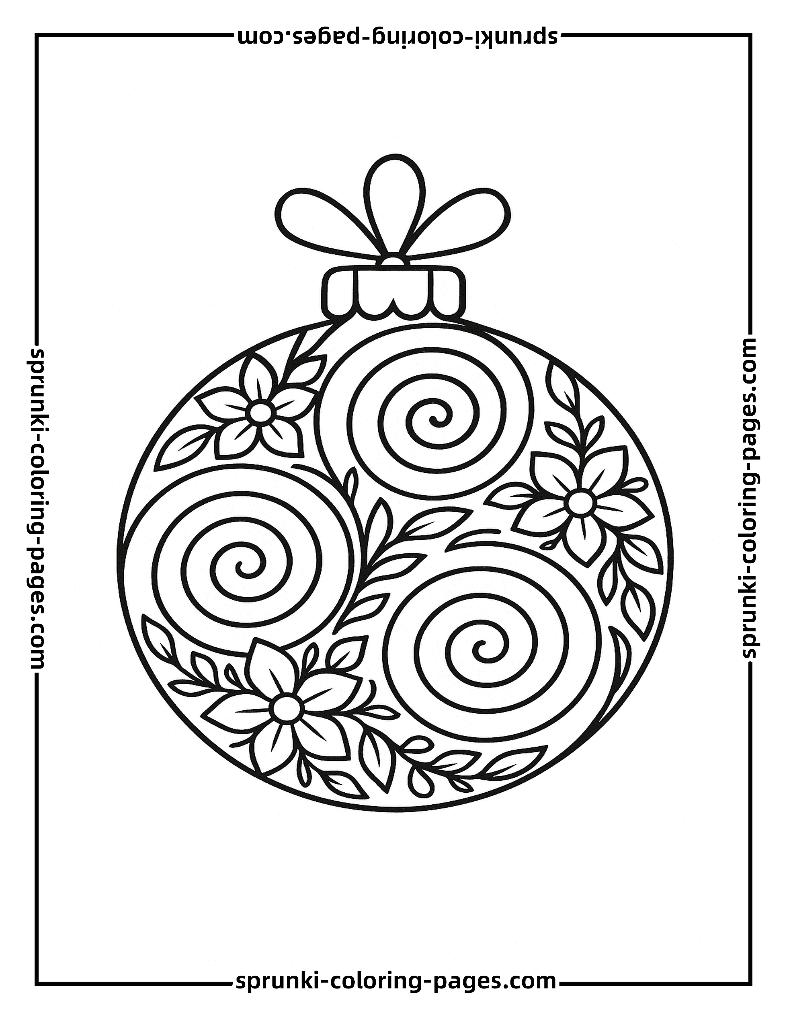 This Christmas Ornament Coloring Page for Adults features a Christmas ornament with intricate concentric swirl and floral designs, perfect for festive christmas coloring pages.