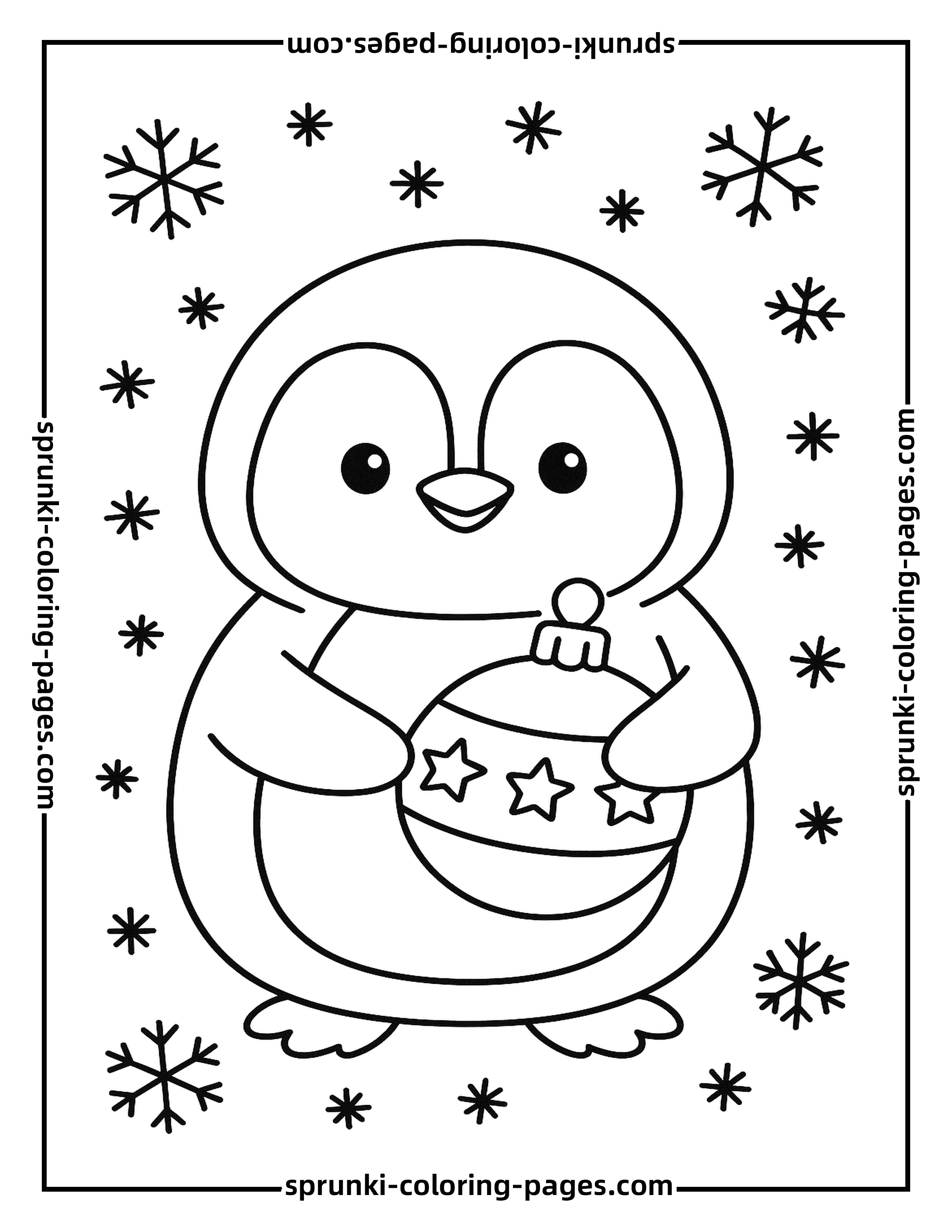 A delightful penguin holding a Christmas ornament surrounded by gentle snowflakes—this easy coloring page captures the cozy winter vibe of the holidays. Perfect for beginners and young kids, it’s part of our christmas coloring pages collection celebrating simple and joyful holiday art.