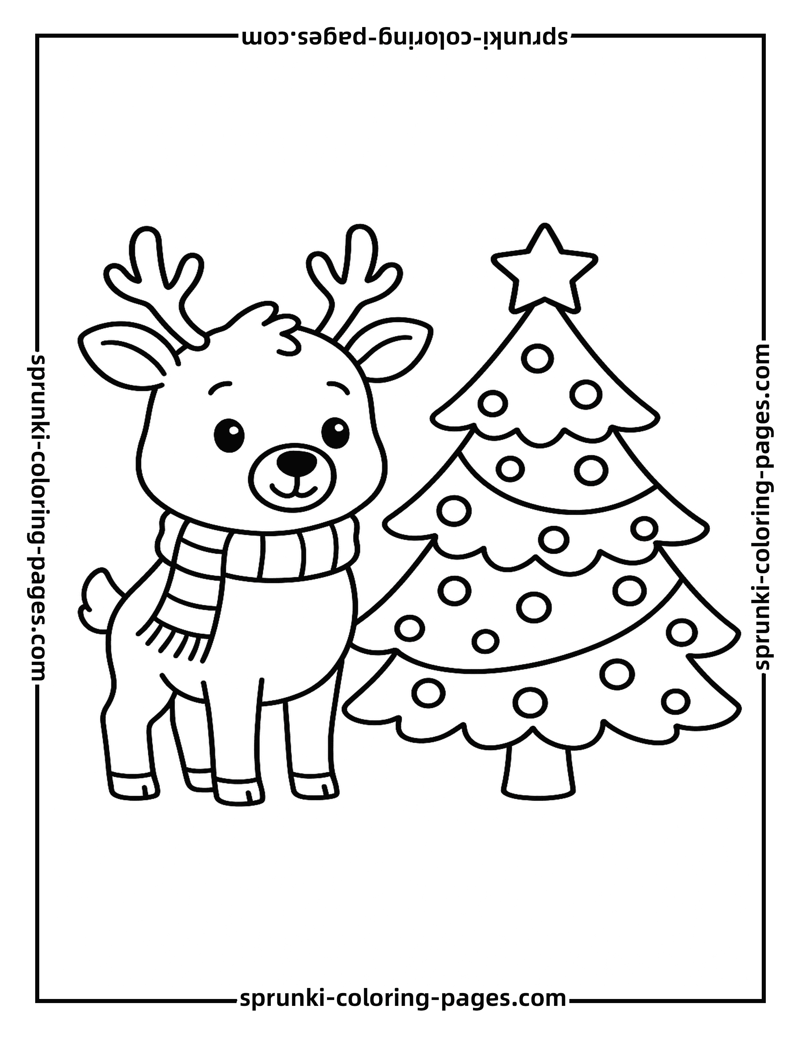 This adorable reindeer coloring page features a cozy winter look with a scarf and Christmas tree backdrop. It’s an easy and heartwarming design for kids who love holiday fun. Find more simple and joyful designs in our christmas coloring pages collection for endless festive creativity.