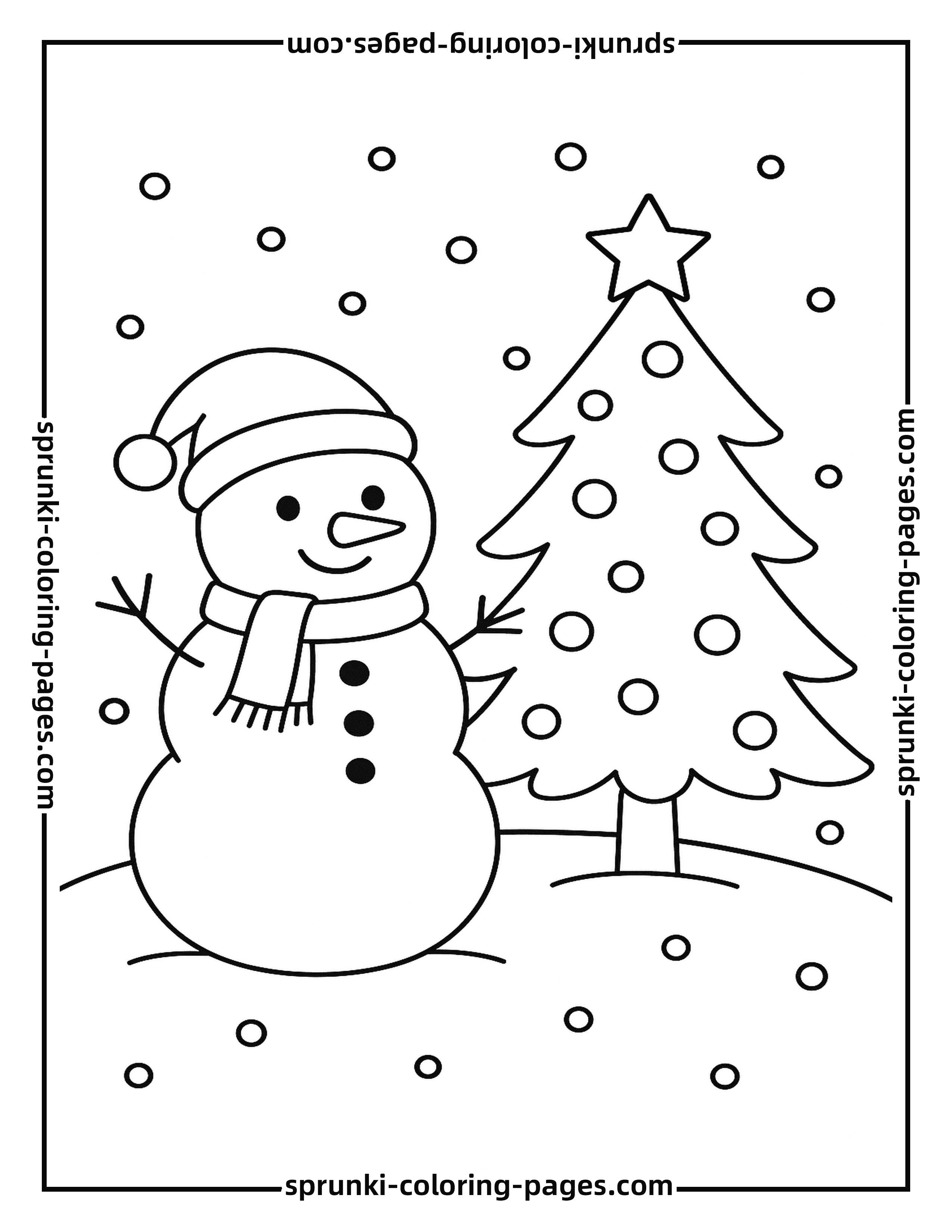- ›Cute Snowman and Tree – Easy Christmas Coloring Pages