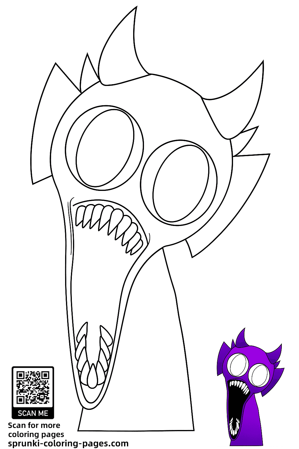 Download the Durple Horror Smile Sprunki Coloring Page! This chilling design captures Durple's eerie smile from his horror form, perfect for fans of creepy and unsettling characters. Let your creativity add color to this spooky design!