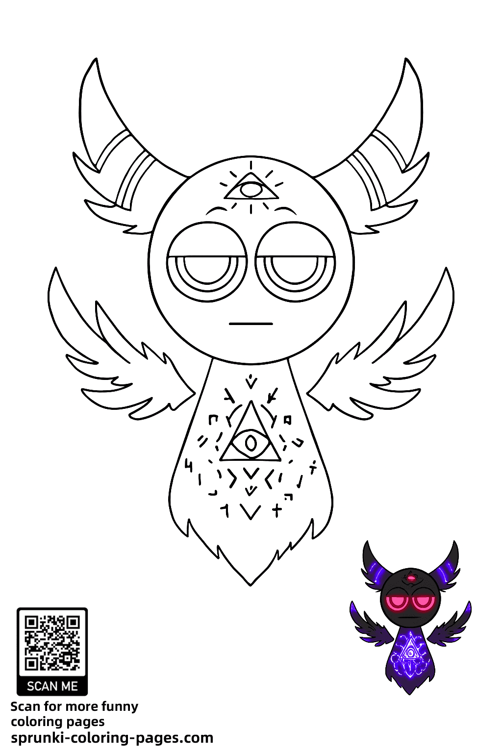 Durple Sprunki Coloring Page – Winged Horror Version Printable Sheet