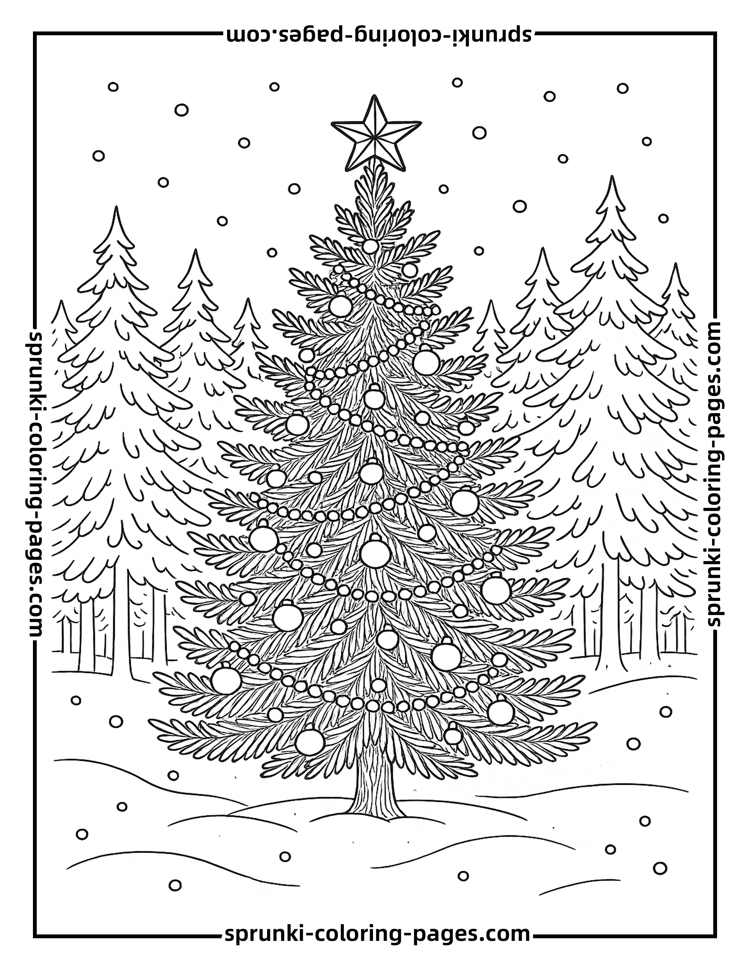 Elegant Snowy Forest Christmas Tree Coloring Page