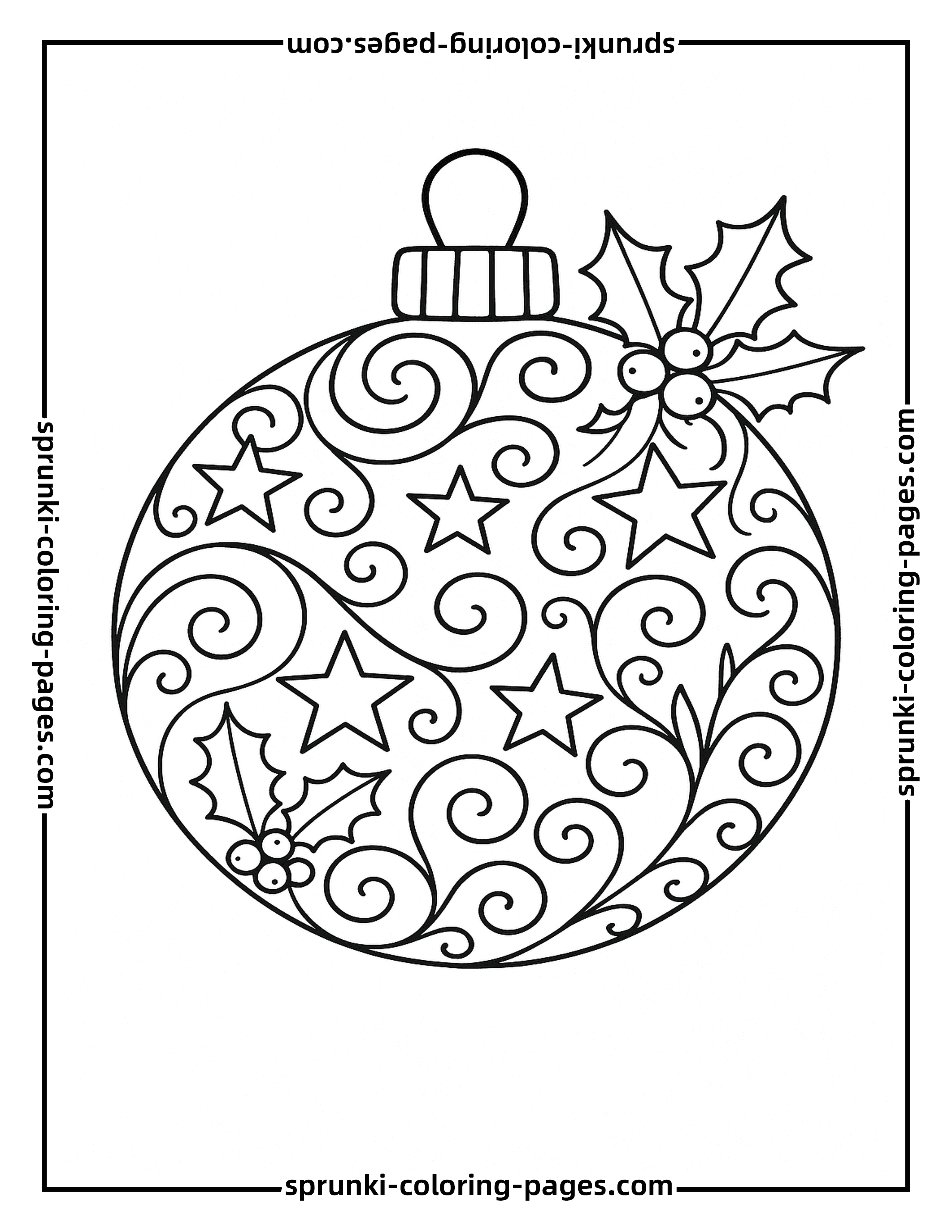 - ›Elegant Stars and Holly Christmas Bauble Coloring Page for Adults