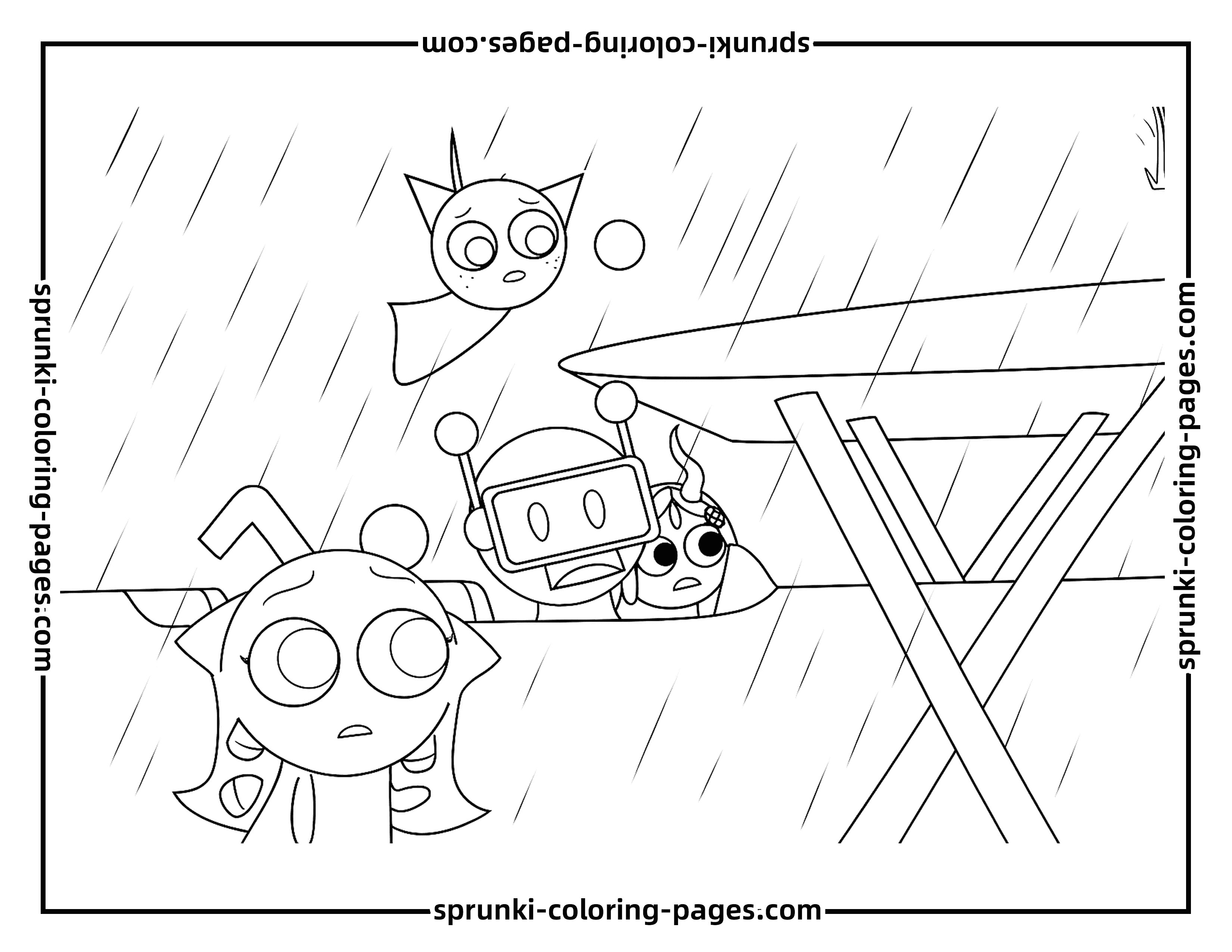 This Sky Sprunki coloring page shows Sky and his friends lifting their spirits and coming together with smiles and energy. The joyful expressions and dynamic poses make it a perfect addition to any Sprunki coloring pages collection, allowing fans to bring this uplifting and encouraging moment to life with vibrant colors and creativity.