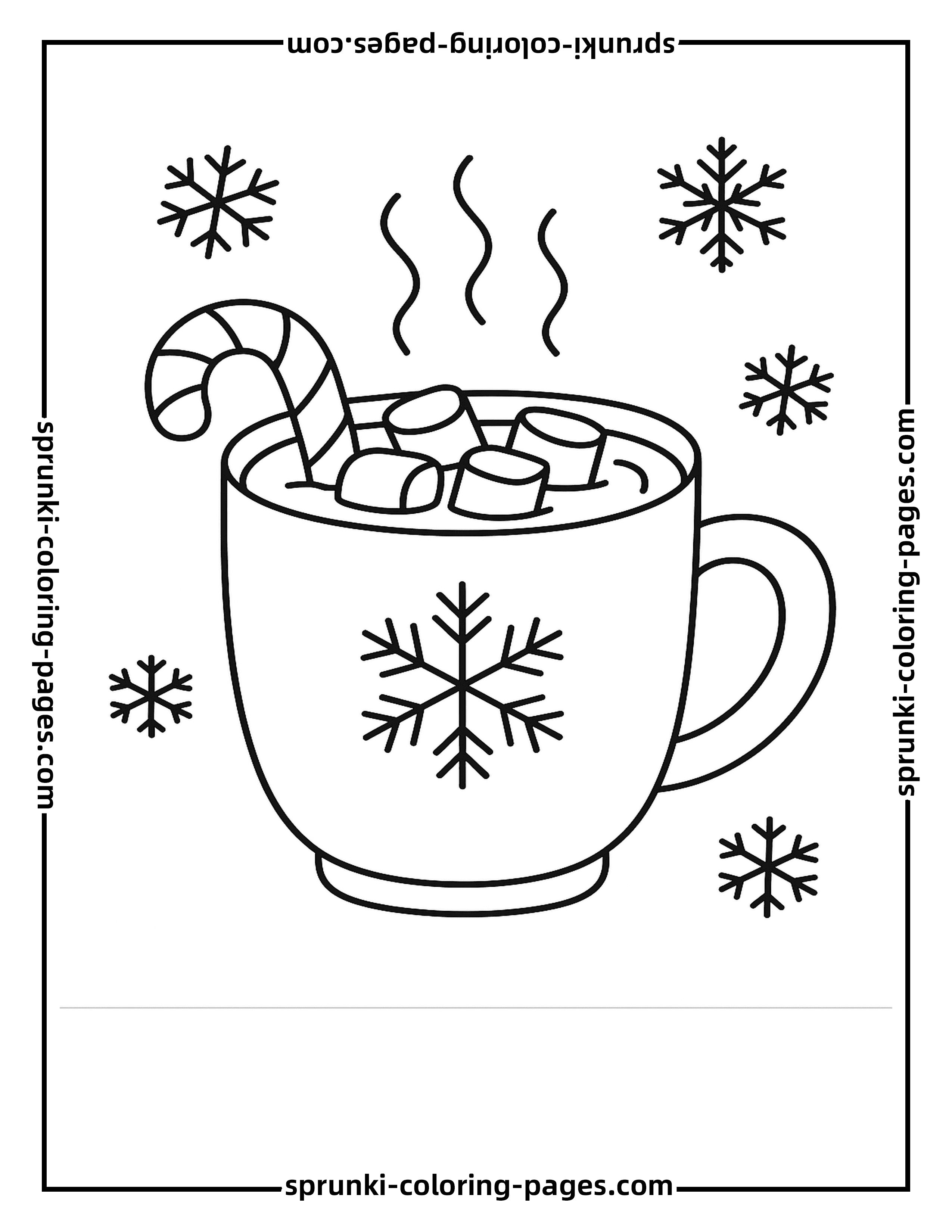 Warm up your holidays with this sweet hot cocoa coloring page! Featuring marshmallows, candy canes, and snowflakes, it’s simple yet festive fun for kids. Visit our christmas coloring pages for more cozy, cheerful designs to enjoy during the winter season.