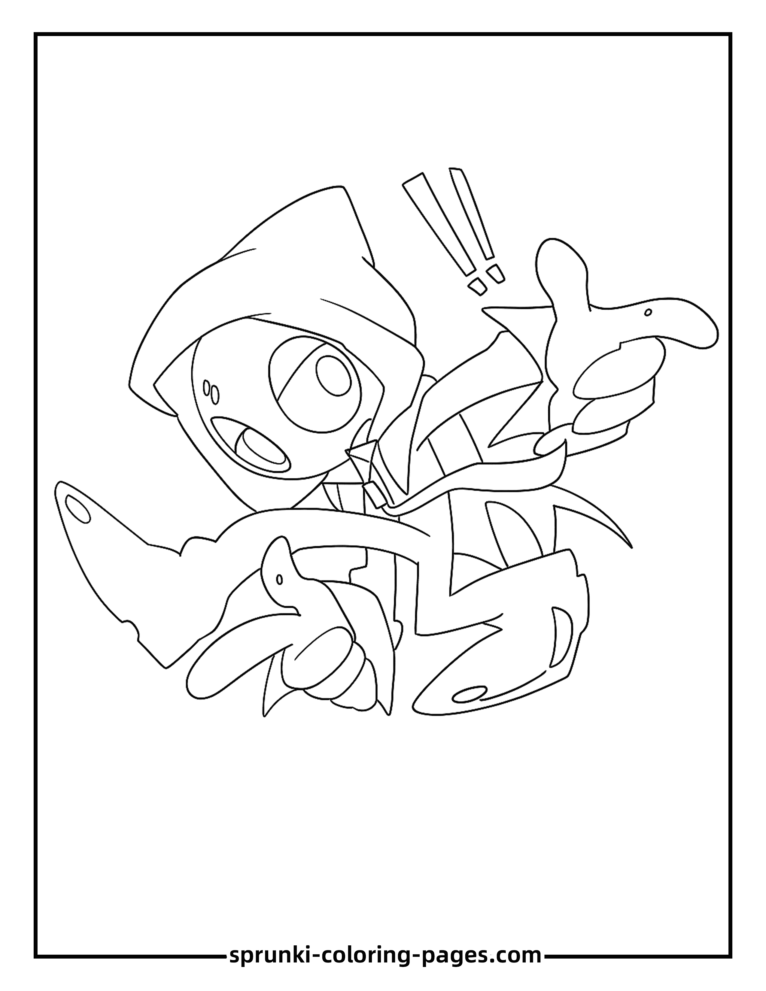 This Jevin Sprunki coloring page features the character confidently holding an axe slung over his shoulder. Known for his mysterious and ominous demeanor, Jevin’s pose in this image reflects his calm yet foreboding presence. As you color, bring his dark blue robe, shaded face, and intense expression to life. This image captures a quiet but powerful moment, offering fans of the Sprunki universe a chance to explore Jevin’s character further. Whether you prefer the normal mode or his chilling horror form, this coloring page is a great way to engage with Jevin’s mysterious, cult-like persona.