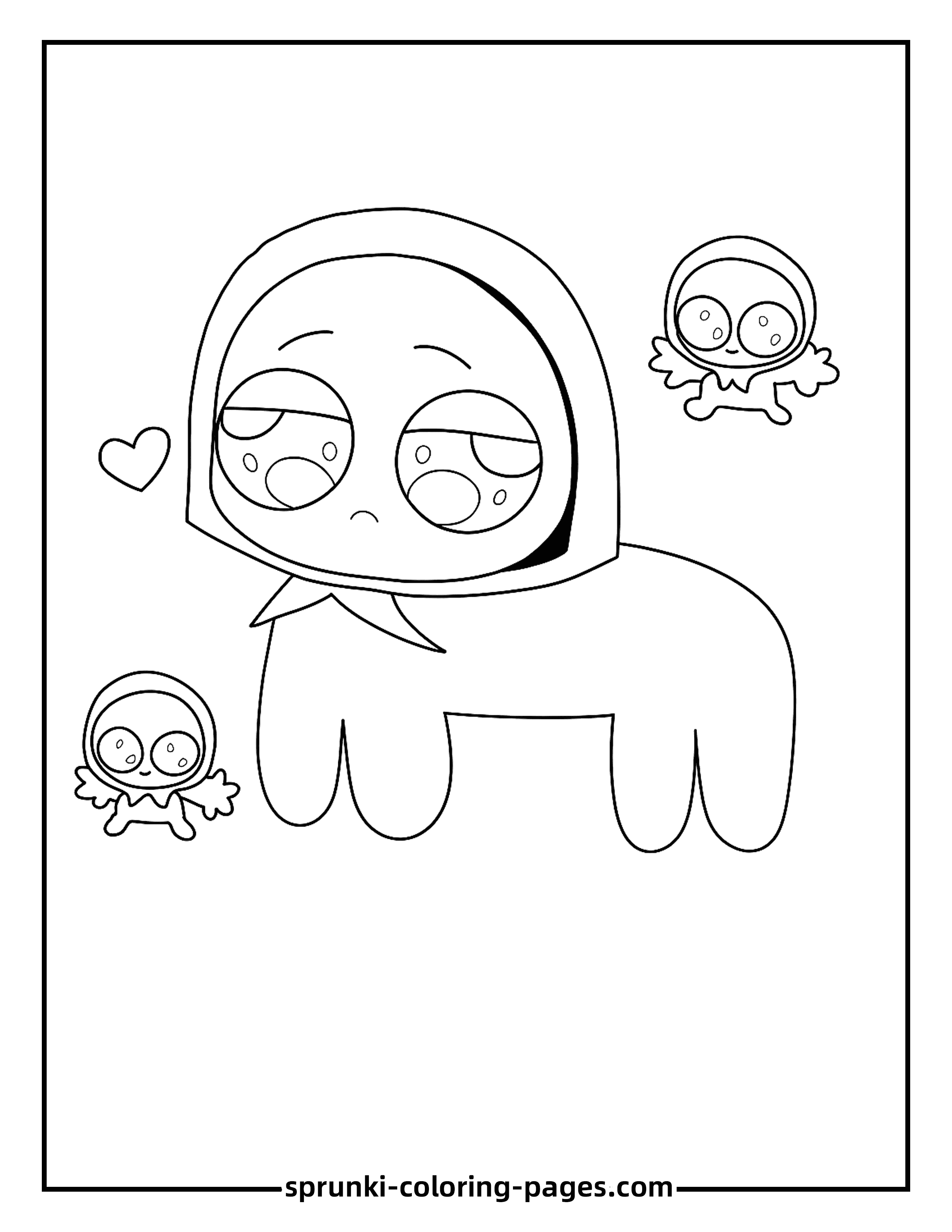 This Jevin Sprunki coloring page showcases the character with an endearing and cute expression, revealing a different side of the usually ominous figure. Known for his foreboding look, this image allows fans to explore a lighter, more playful version of Jevin. Whether you're coloring his dark blue robe or the subtle details in his face, this page is perfect for bringing out the charm of this mysterious yet kind-hearted character. Fans of Sprunki coloring pages will appreciate adding their own creative touch to Jevin's character, capturing both his intriguing personality and his rare moments of softness.