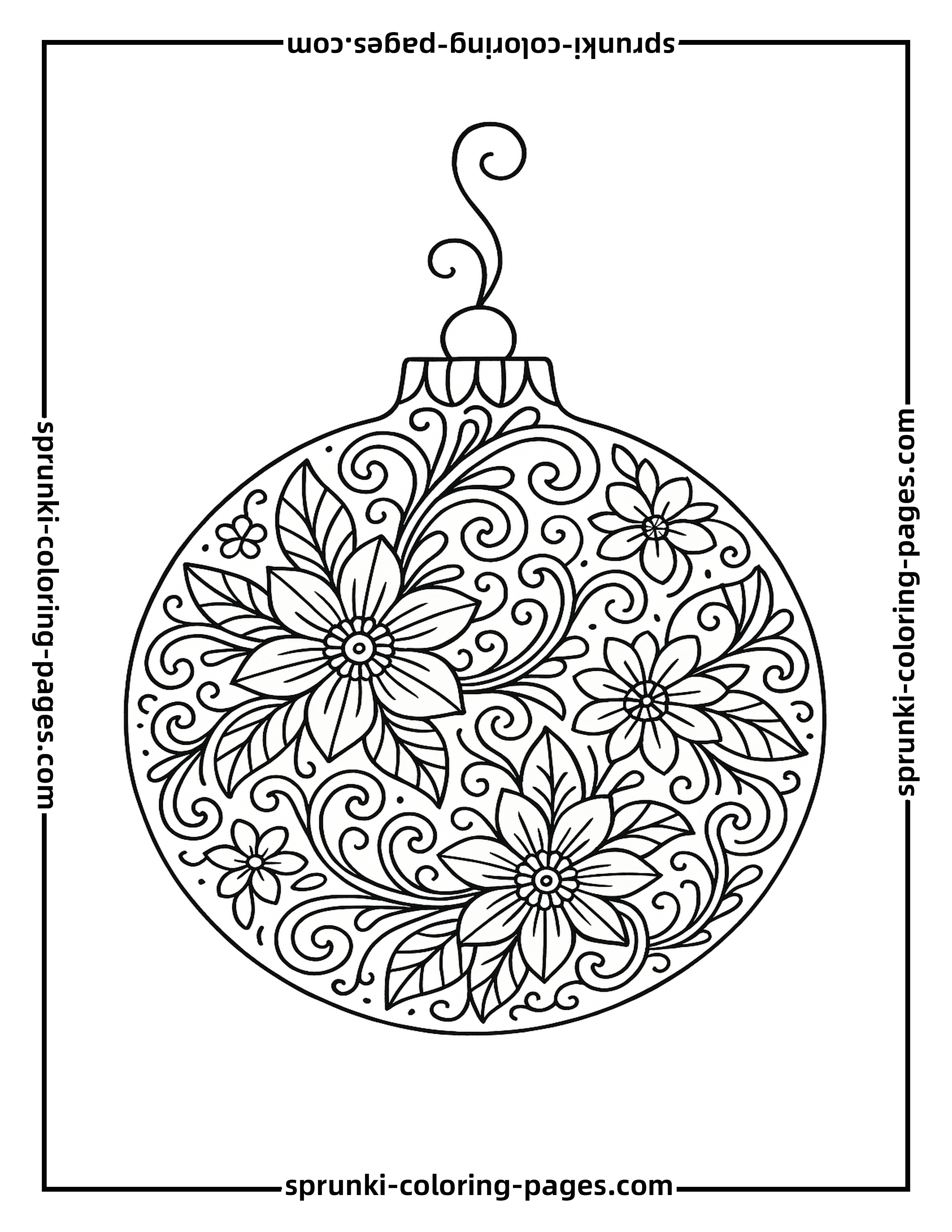 Layered Floral and Swirl Holiday Ornament Coloring Page