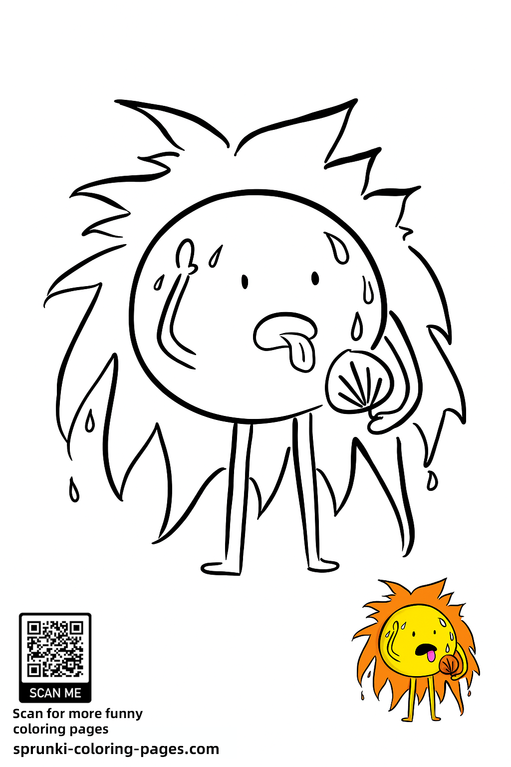 Mr. Sun Sprunki Coloring Page features a funny summer scene where Mr. Sun fans himself and sticks out his tongue in the heat. This printable coloring sheet is perfect for kids and Sprunki fans who love expressive, sunny characters.