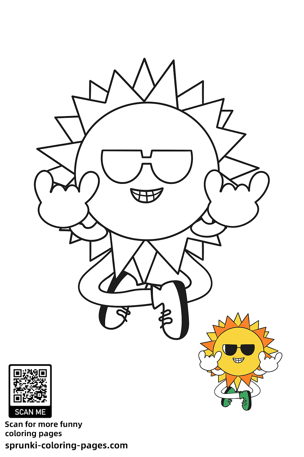 Grab this fun Mr. Sun Sprunki Coloring Page – Glasses Off Cheers Version—a free, printable sheet that shows Mr. Sun in a lively mood from the Incredibox Sprunki mod!