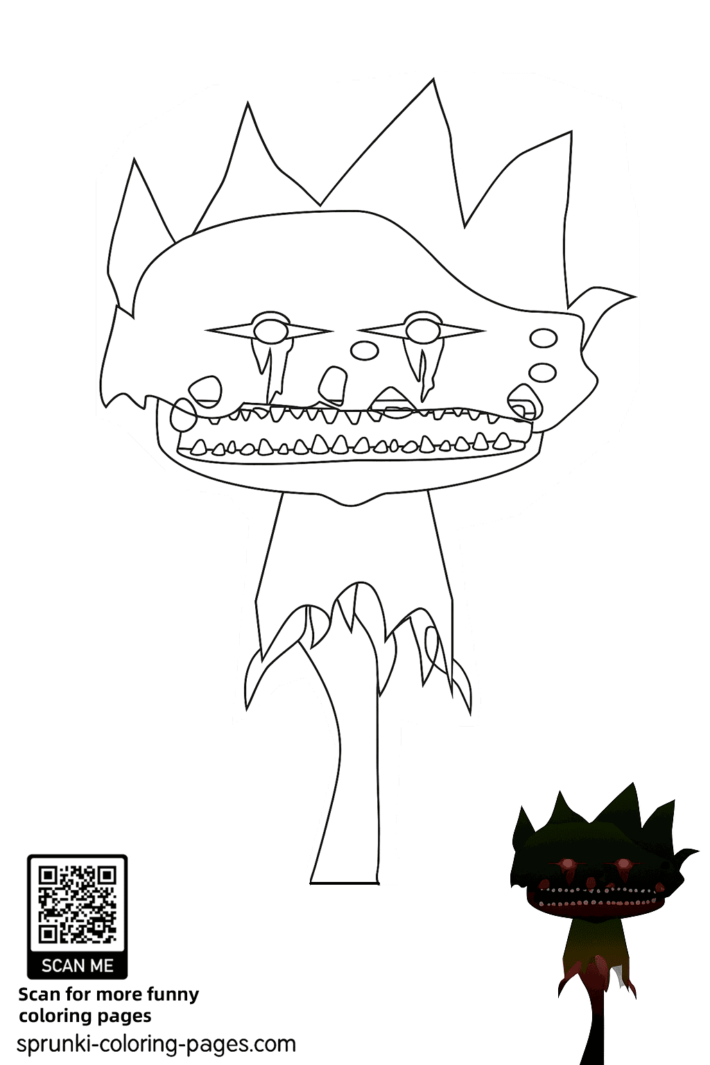 Bring OWAKCX (Lime) to life with this Sprunki coloring page in his horror form. Download and print this free sheet to enjoy coloring one of the most unique Sprunki characters.