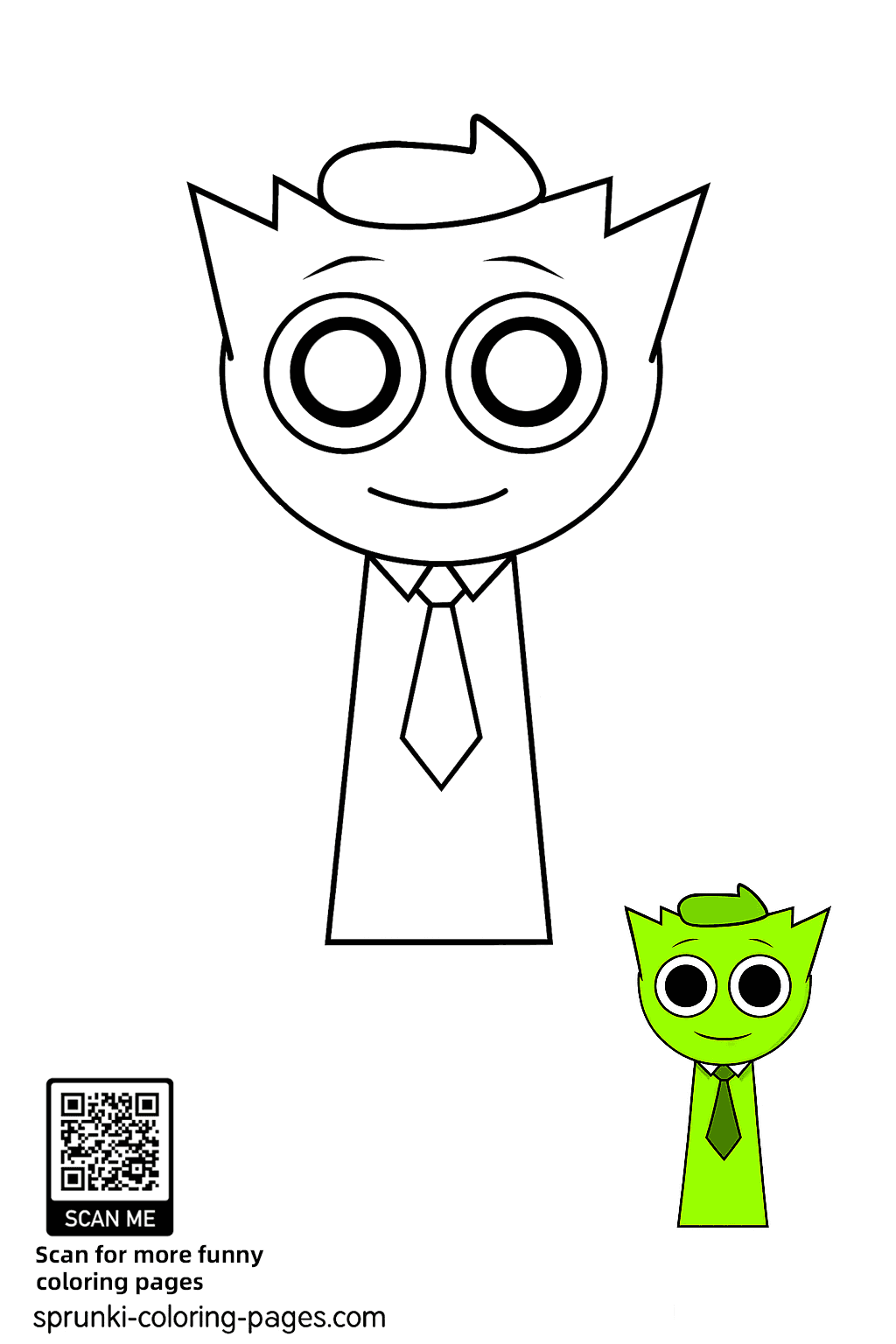 Bring OWAKCX (Lime) to life with this Sprunki coloring page in his horror form. Download and print this free sheet to enjoy coloring one of the most unique Sprunki characters.