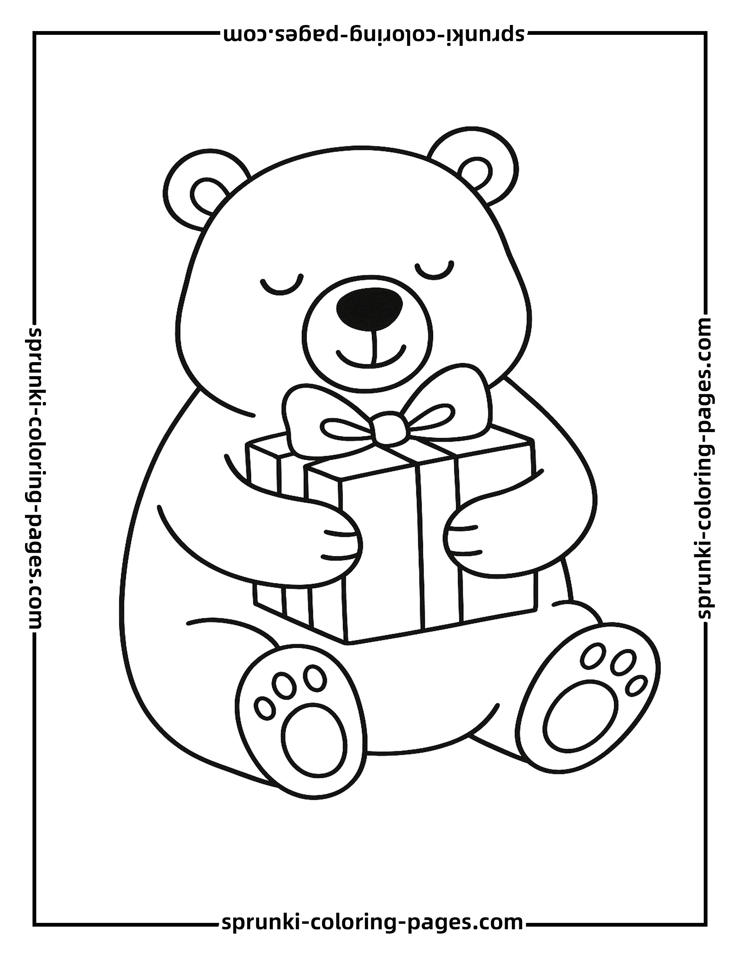Easy Christmas Coloring Pages – Polar Bear Hugging Gift