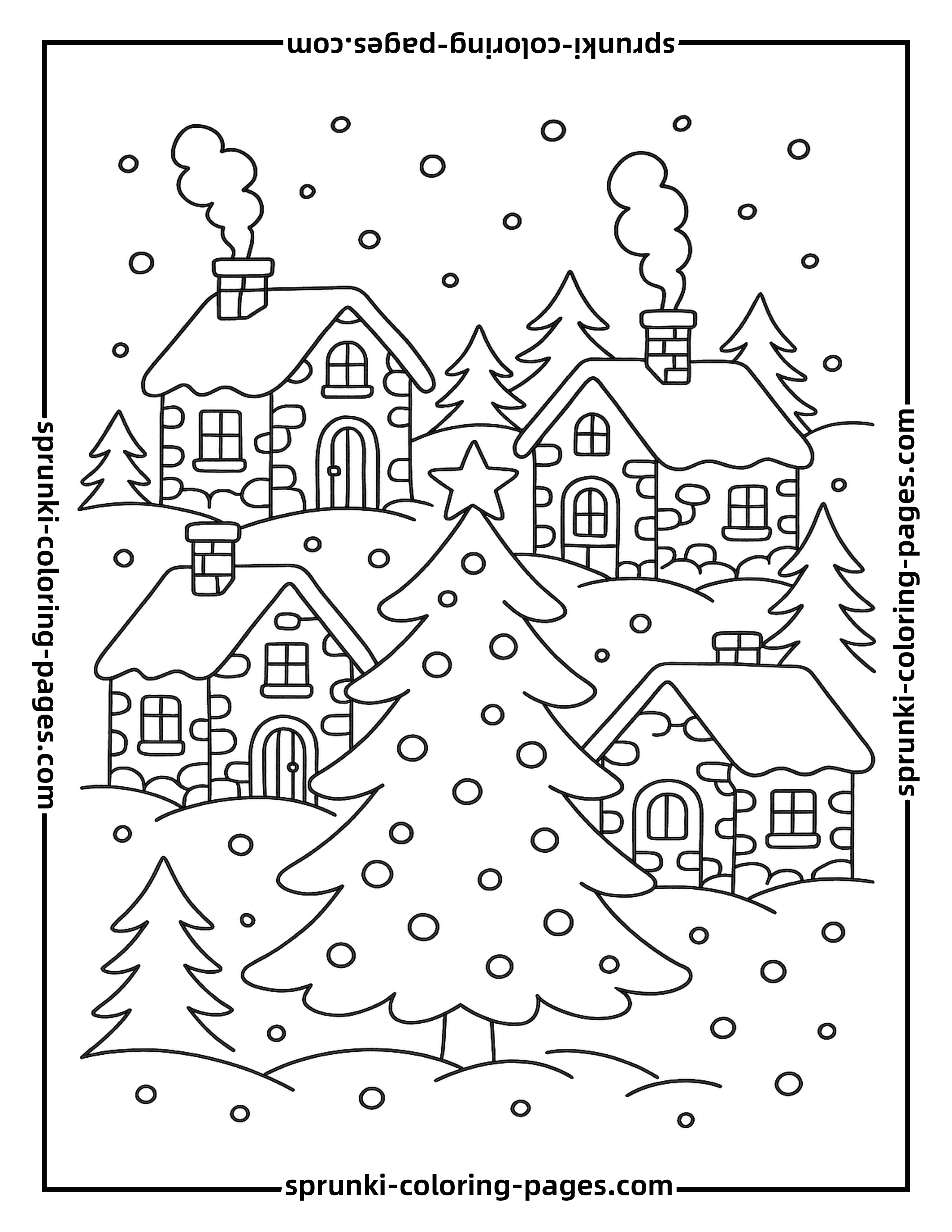 - ›Rustic Snowy Village Christmas Tree Coloring Page