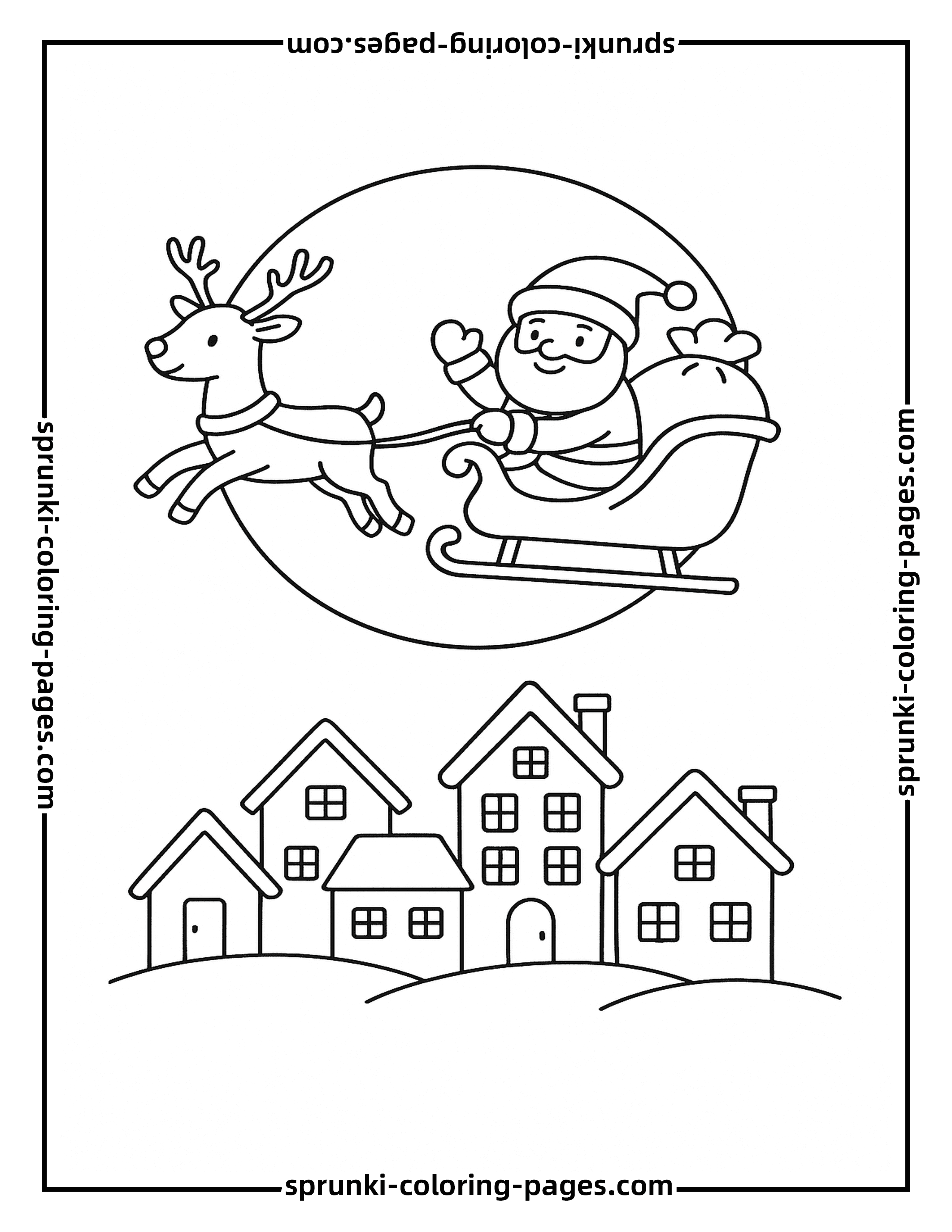 - ›Santa Flying Over Houses – Easy Christmas Coloring Page