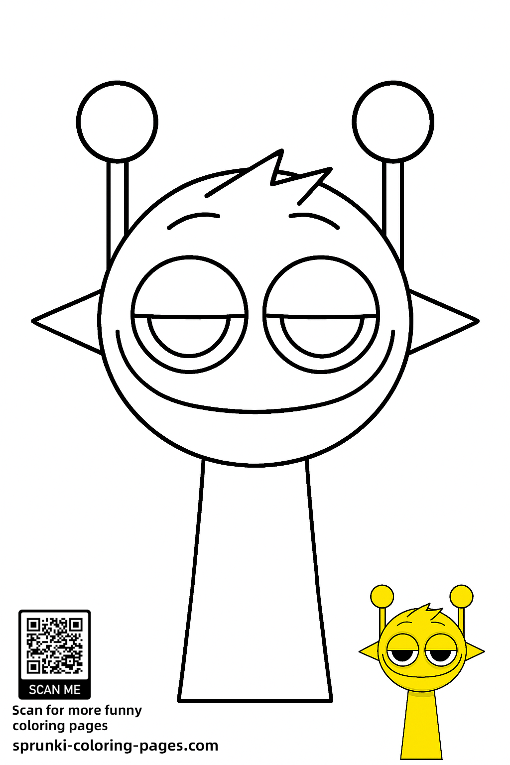 Grab this cheerful Simon Sprunki Coloring Page – Smiling Expression—a free, printable sheet that captures Simon’s friendly look from the Incredibox Sprunki mod! This coloring page features Simon in his iconic yellow alien form: soft smiling face, spiky horns, straight antennae, and a swept-up fur tuft on top. Perfect for adding bright, warm colors—use bold yellows for his body, soft whites for his fur, and light grays for his antennae to make his smile stand out. No sign-ups or fees needed: print it directly from your browser, save as a PDF for later coloring, or color digitally. It’s great for Sprunki fans who love Simon’s kind personality, or kids wanting a happy coloring project—pair it with Oren or Durple’s smiling coloring pages to make a fun best friends scene!