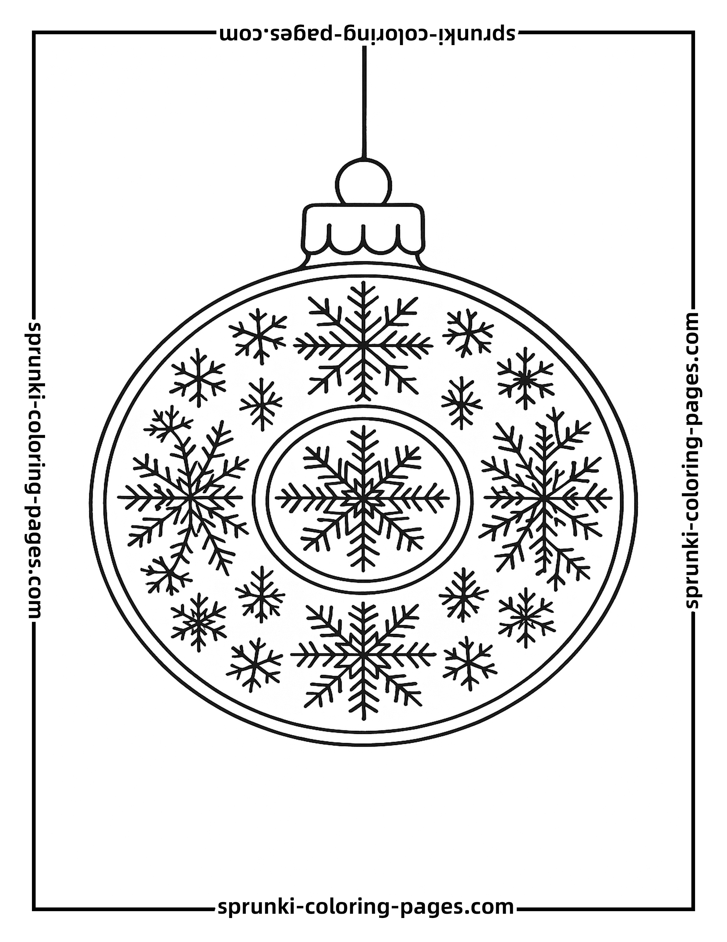 This snowflake pattern ornament coloring page for adults presents icy geometric detail, perfect for a relaxing winter art session.