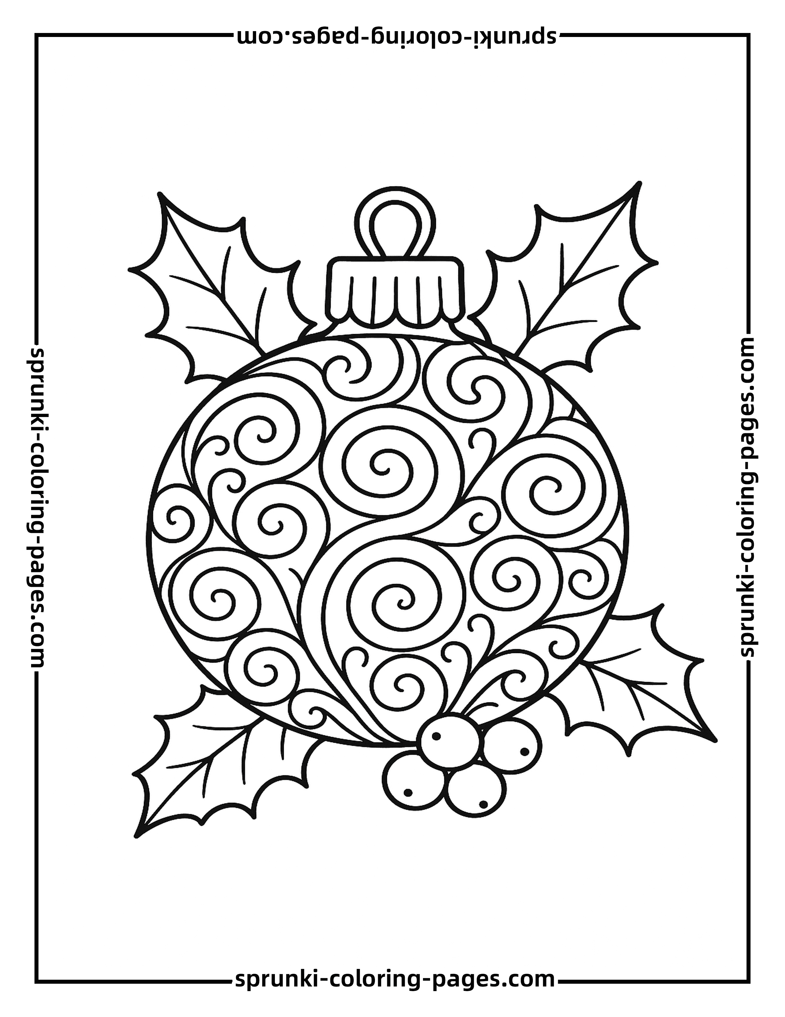 - ›Swirl and Holly Christmas Ornament Coloring Page for Adults